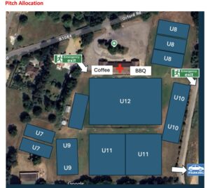 Team gazebos are welcome and team locations should be to the side of the pitches, please do not block the emergency access or main walkways.